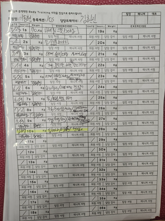 운동을 많이 해본편인데 약 5년 쉬고 다시 시작해서 올바른자세로 운동을 잘 배우는것을 목표로 현재 10회 좀 넘게 pt받고있습니다:)