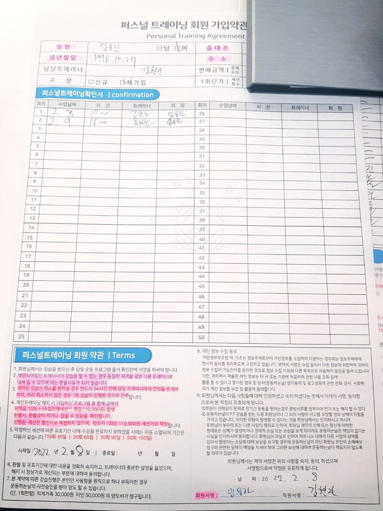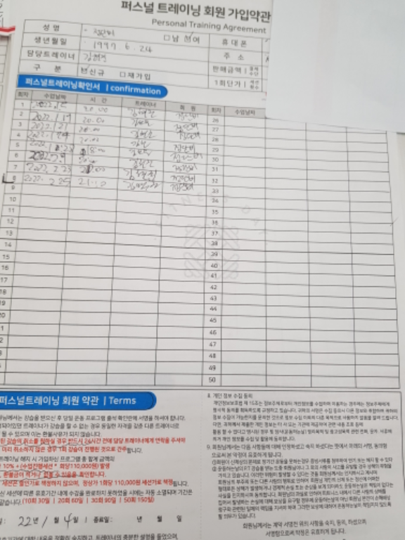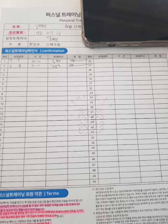 정말 생애 처음으로 PT라는것을 받아보았네요.