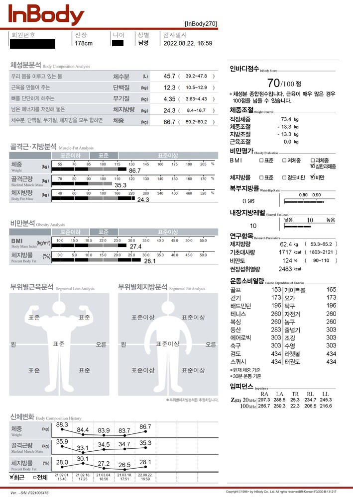 평생 운동과는 담을 쌓고 살아와 175/90kg 고도비만으로 pt를 시작하였습니다.