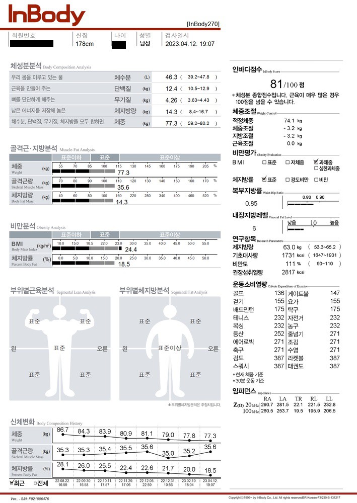 결과 먼저 말하자면 후기작성하는 현재 78.8kg으로 약 50일만에 근육량 손실없이 11kg감량에 성공했고 쭉 pt와 함께 페이스를 이어가려합니다