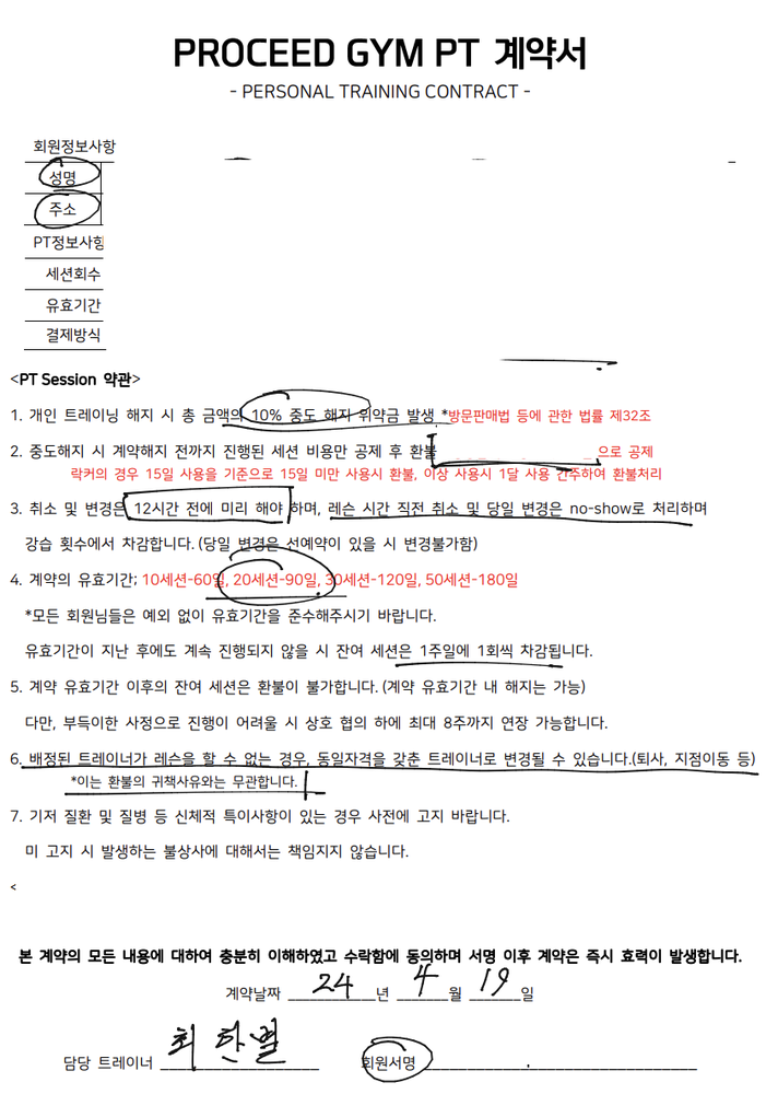 또 개인사유로 다른 헬스장으로 옮기게 되서 PT연장을 못하게 됬는데, 다른 곳으로 가게됨에도 불구하고