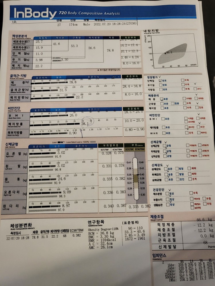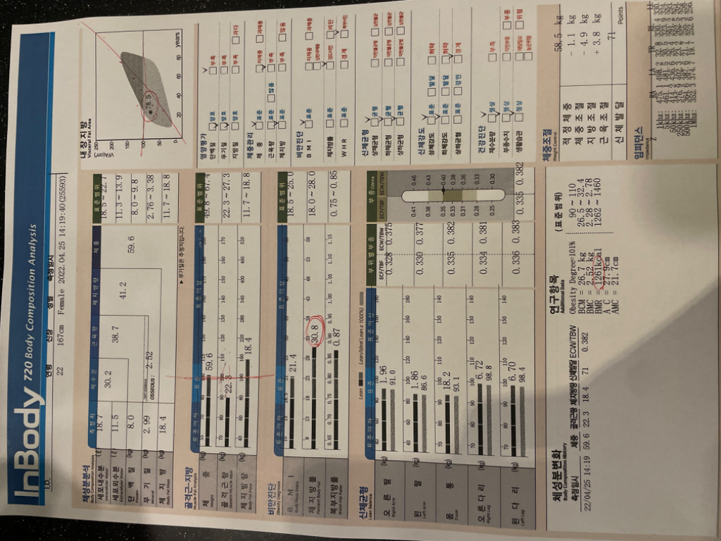 평소에 운동에 관심 없었던 제가 회식과 술자리가 점점 생겨서 홈트를 하게 된 이후로 운동에 점차 욕심이 생겨서 헬스장 등록을 하고 지은 쌤한테 상담을 받는데 인바디 결과와 함께 앞으로 어떻게 해야 할지 자세히 알려 주셨습니다.