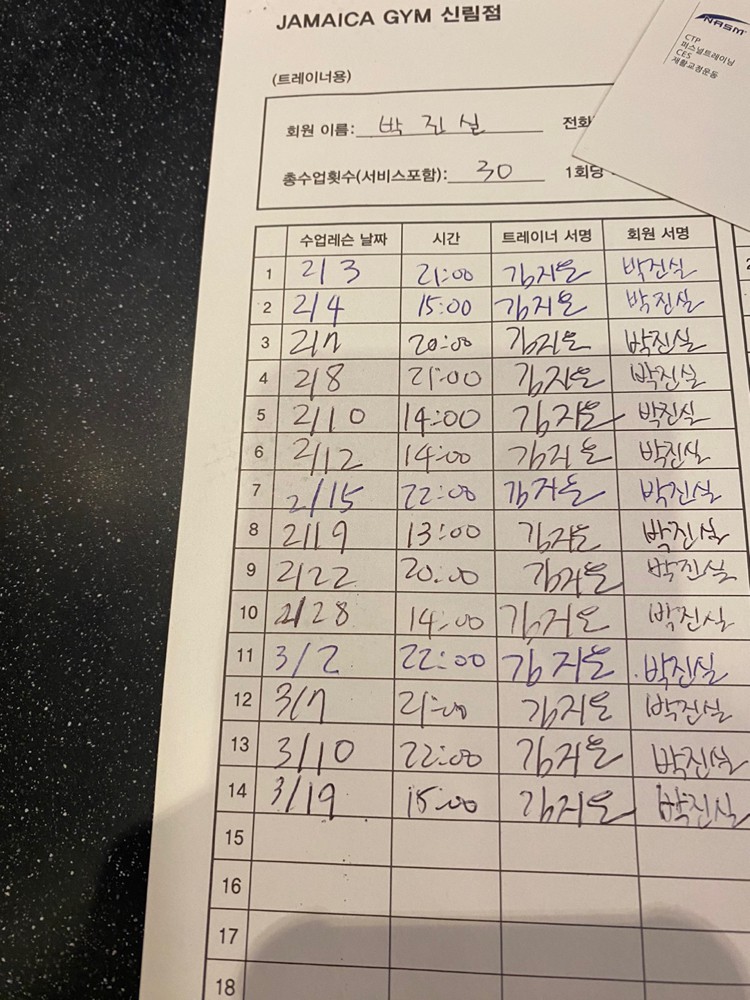 자마이카 휘트니스에서 지은쌤한테 30회 피티받게된 직장인 헬린이입니다.