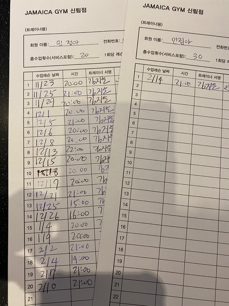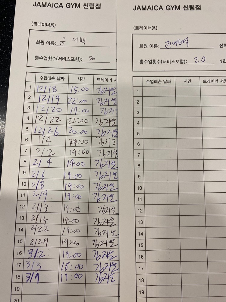 개인운동 하는날에도 살짝 보시고 수업때 피드백 주시는