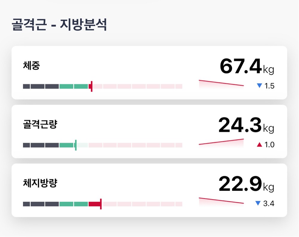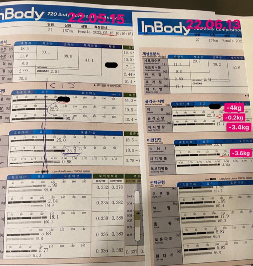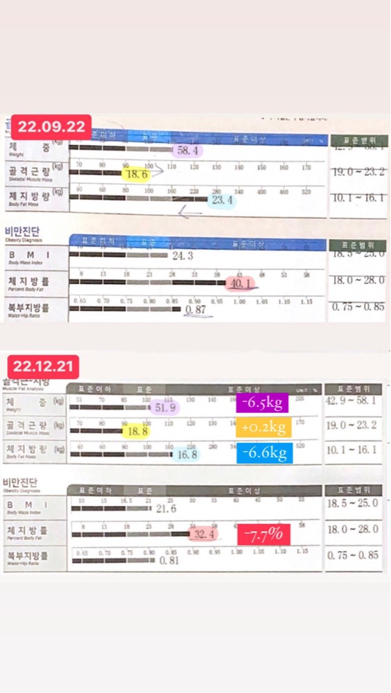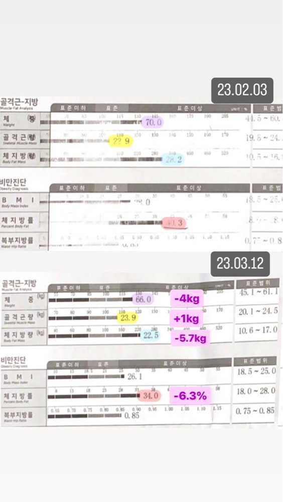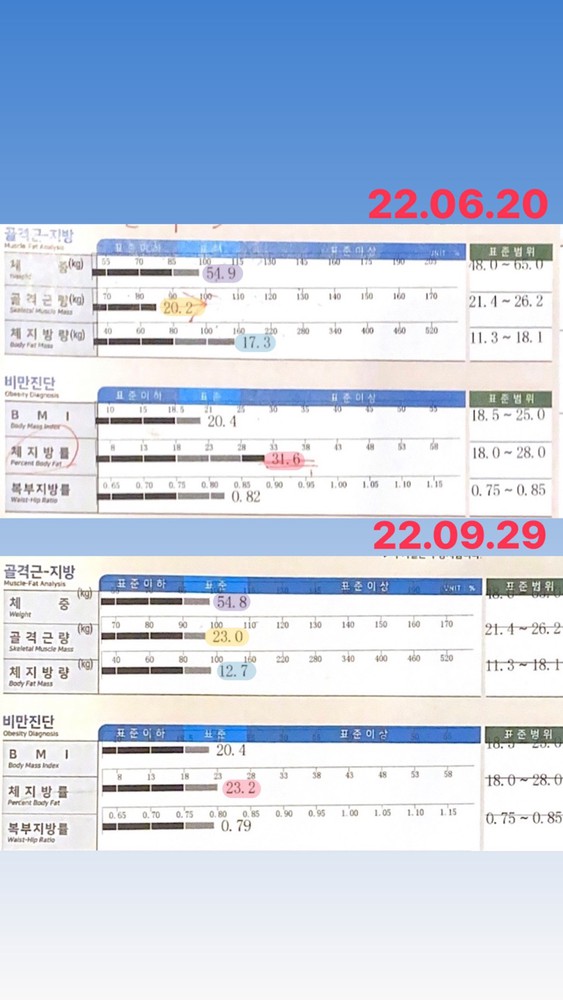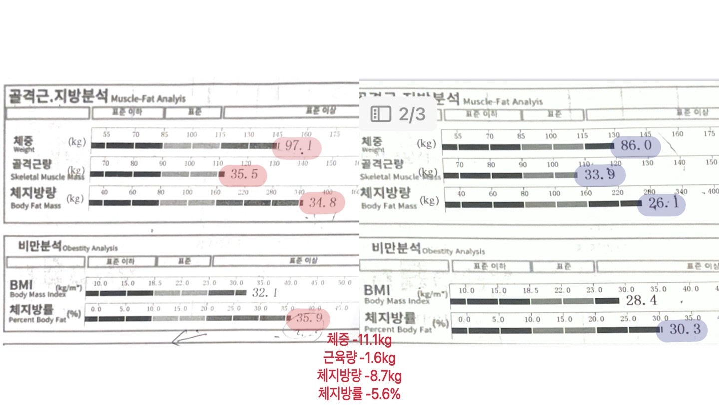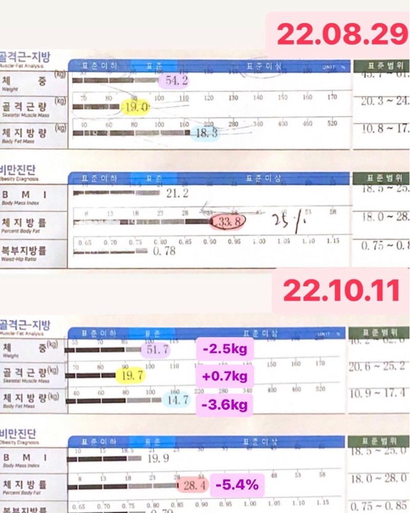 결과적으로 ✔️1키로 득근 ✔️체지방 3키로 감소했어여!