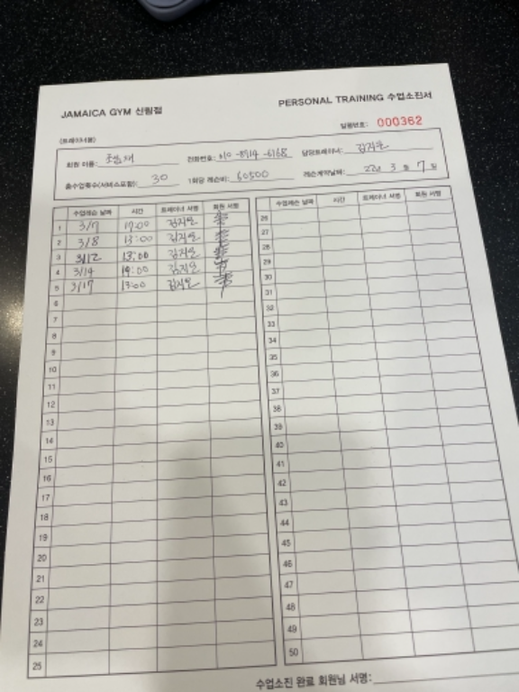 기존 30회 등록하고, 20회 추가 등록했어요! PT는 꼭 지은쌤께 받으세요!