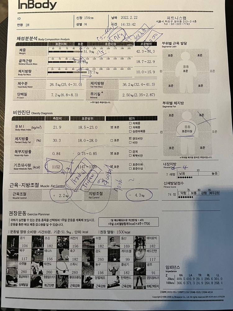 우선 가면, 불편한 곳 있는지 체크해주시고 원하는 효과 물어봐주시고 인바디부터 재는데, 생각 그 이상으로 더 세밀하게 원하는 효과를 보려면 근육은 얼마 지방은 얼마를 +- 해야하고 그렇게 되려면 식단은 어떻게 해야하는 지 다 알려주십니당!