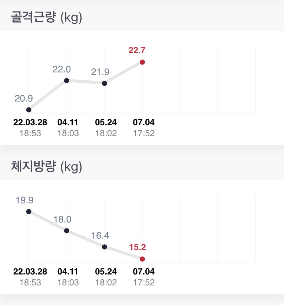 저체중 과지방이었는데 10회지난 지금 제 인바디가 근육은 늘고 체지방은 줄어서 뿌듯하고 계속 강사님이 하라는대로열심히하려고요ㅋ