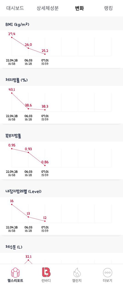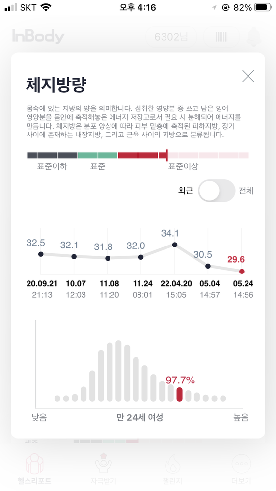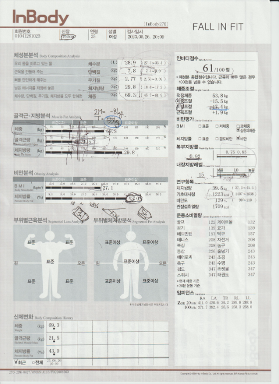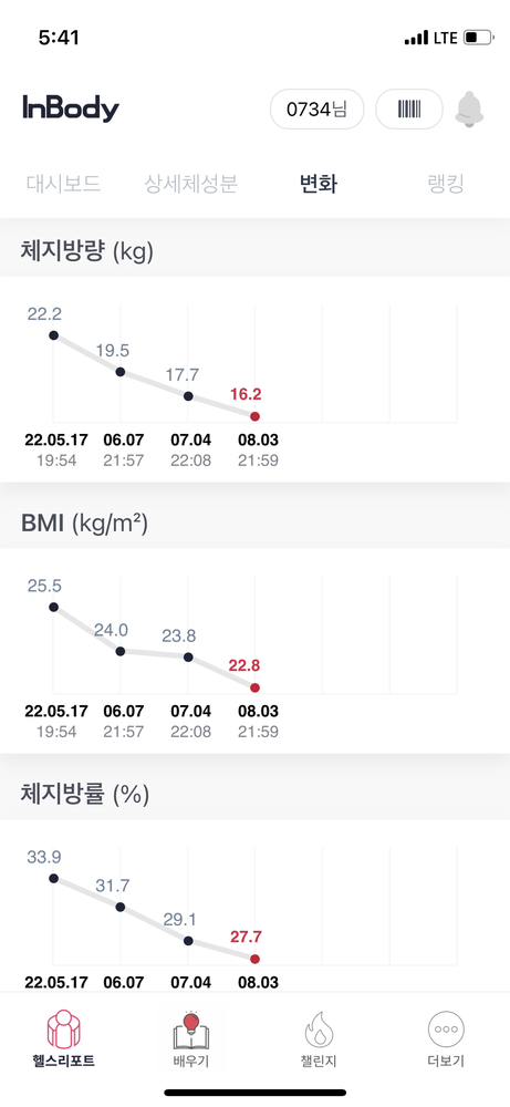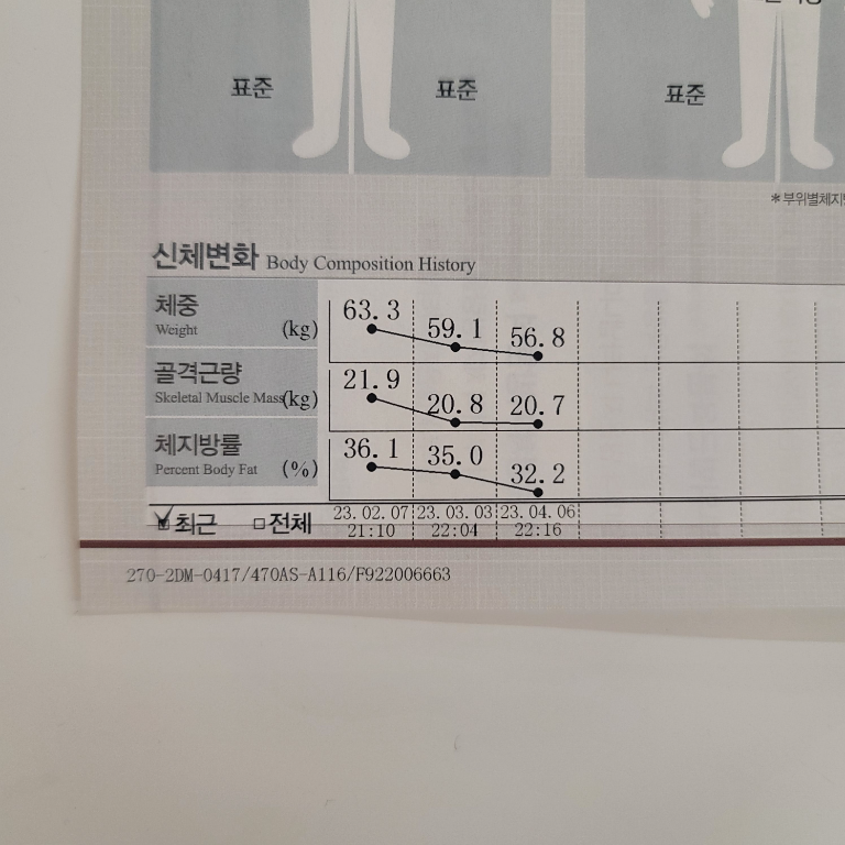 마지막으로 피티 받으면서 체지방이 34.1에서 29.6으로 줄었습니다. 효과짱! 승환쌤 감사합니다~!