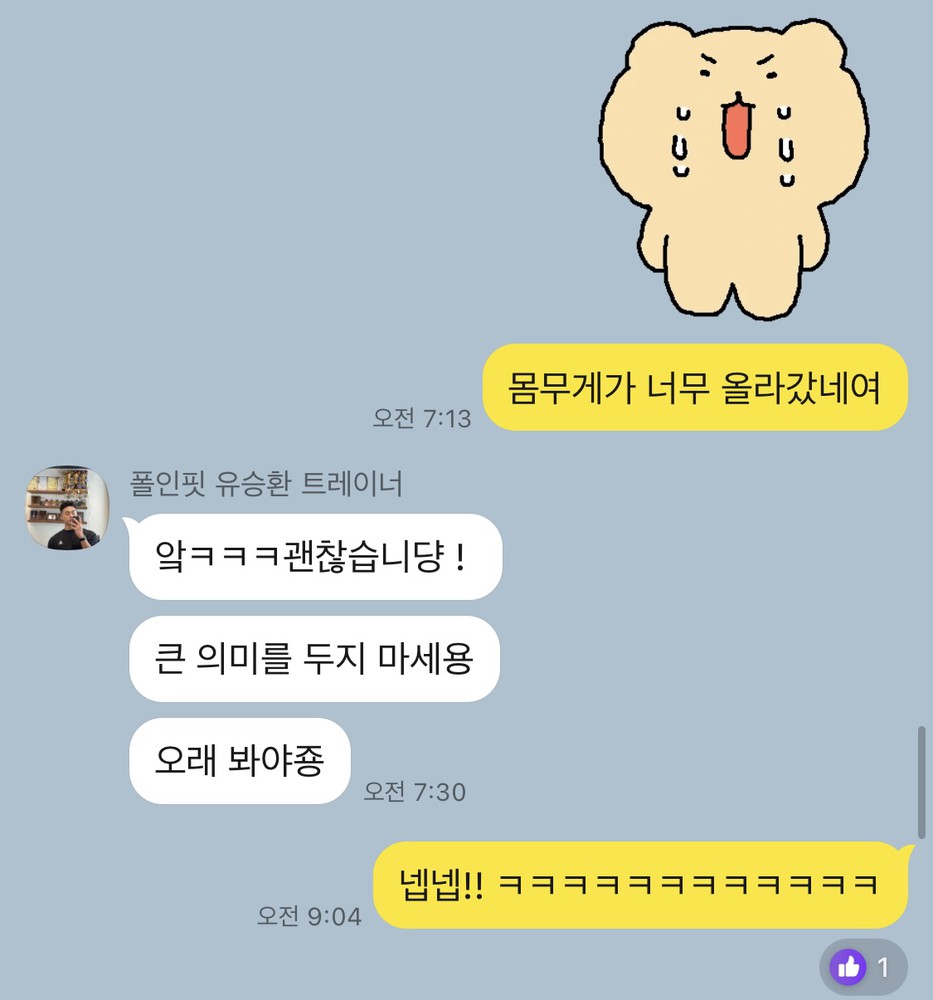 운동은 전문가와 함께해야 한다는 말을 직접 몸으로 느껴주셨다니, 코치로써 더 바랄 게 없습니다🙏🏻