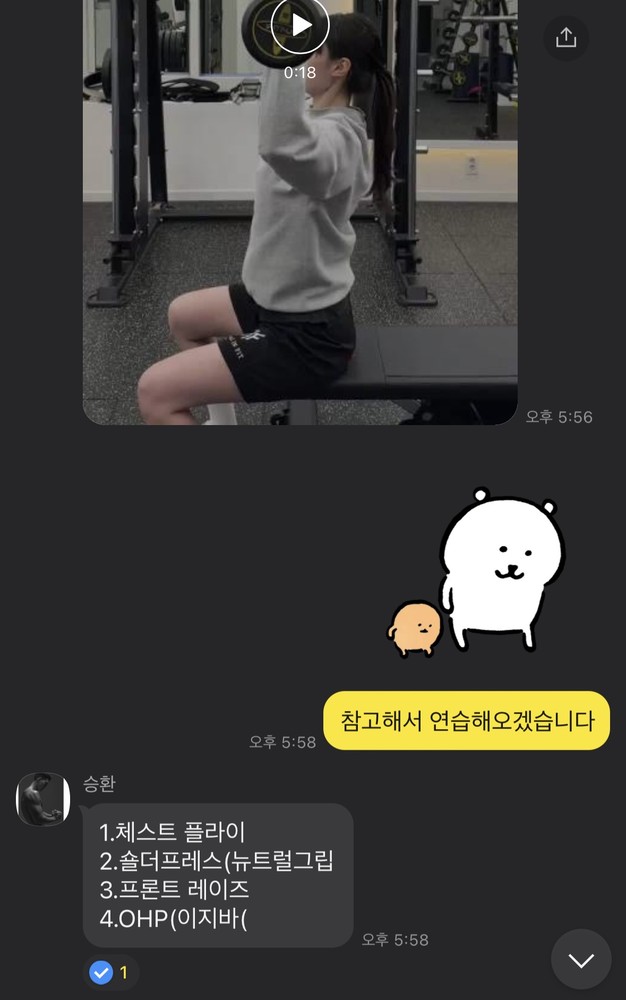 동영상 기록으로 부족한 자세도 피드백 해주시는 섬세함까지..!! 덕분에 운동이 취미가 되었습니다!! 💪