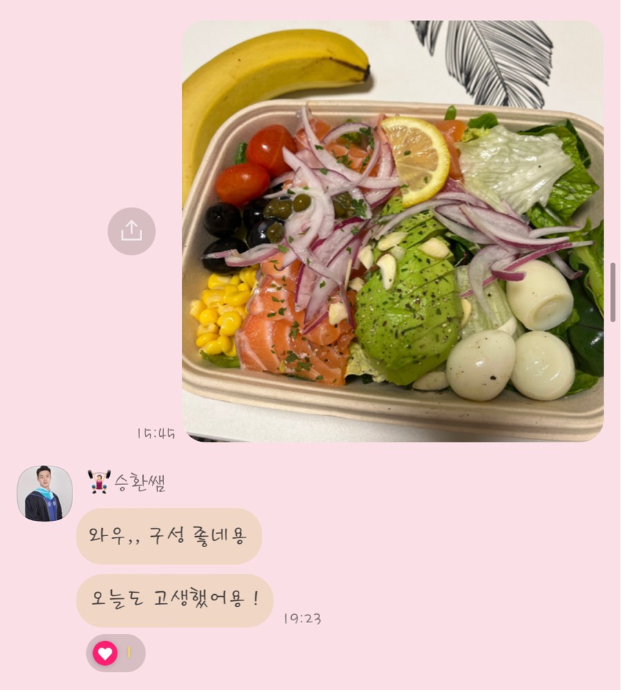 식단도 닭가슴살로만 단백질을 채우려면 질리고 힘든데 구부나 생선으로 다양한 음식으로 단백질을 채울 수 있어서 편하고 좋았어요ㅎㅎㅎ 승환쌤 짱👍👍