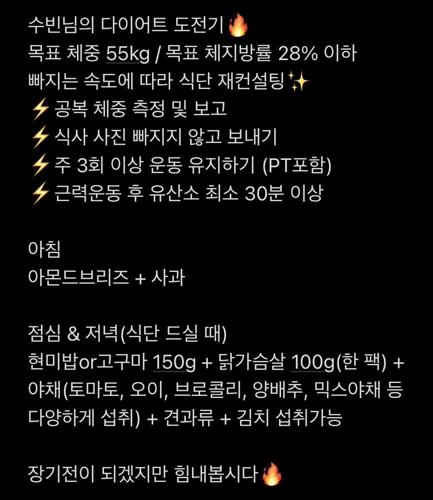 내년 결혼식을 목표로 앞으로도 건강하고 수빈님 다운 몸을 만들기 위해 노력하겠습니다! 감사합니다🙌🏻