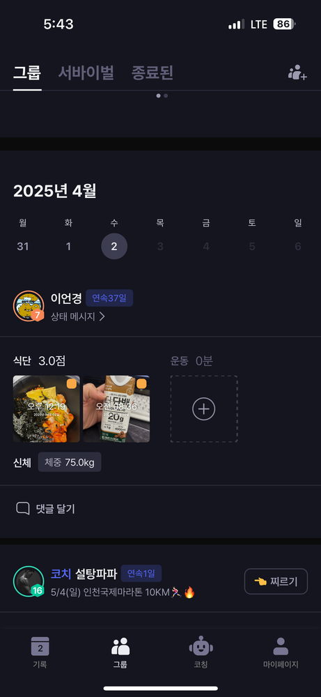 하루하루 체중, 식단, 컨디션까지 체크해주십니다.