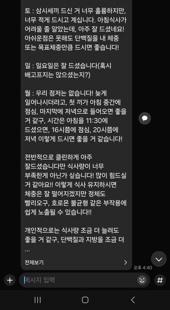 식단 피드백도 꼼꼼히 해주셔서 지금은 지속가능한 식단을 유지하고 있습니다.