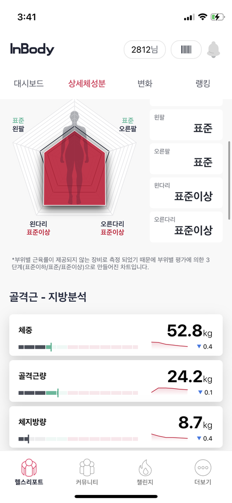 피티받은지 4번짼데 몸무게 감소와 눈바디로도 살이 정리되어가는게 보여요! 피티 30회 다 받으면 얼마나 몸이 예쁘게 빠져있을지 너무 기대가 돼요!!