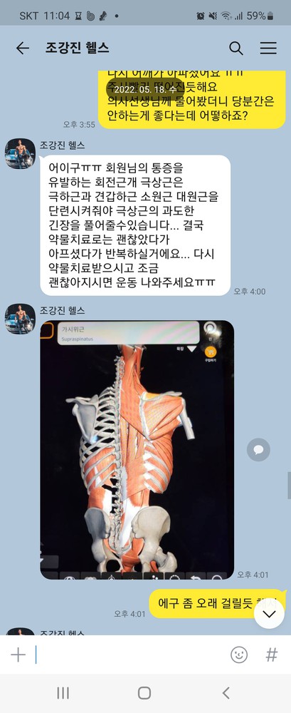 운동수행능력이 날이갈수록 늘어나는 우리 종훈회원님!! 크... 소중한 후기 감사드립니다🤗 어제도 말씀드렸다시피 대퇴이두와 비복근 스트레칭 잘해주시고 앞으로도 우리 화이팅해봐요!!