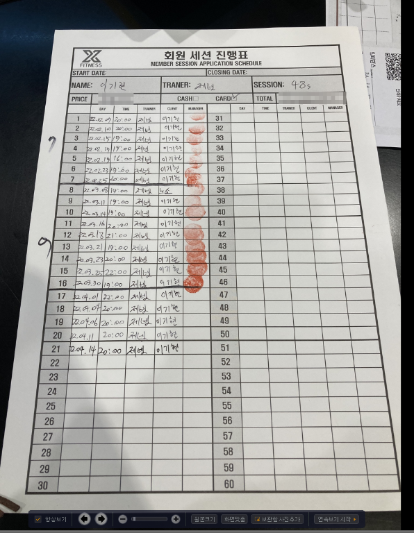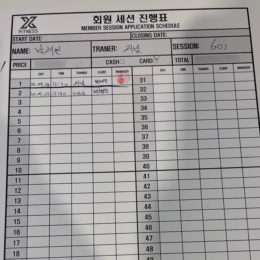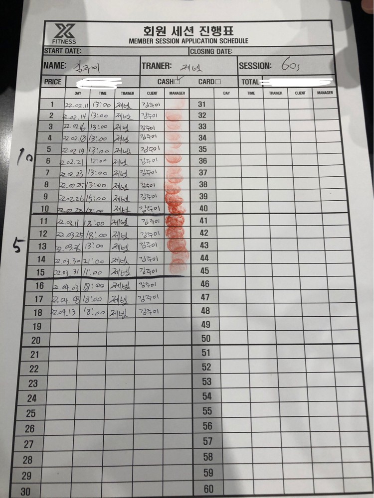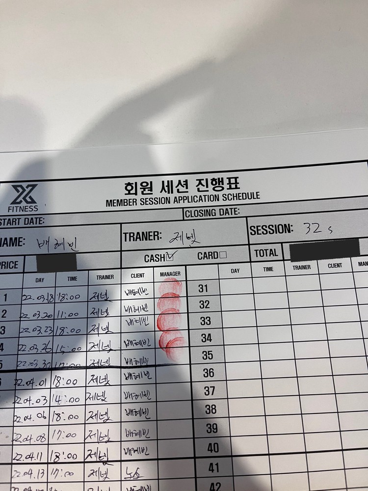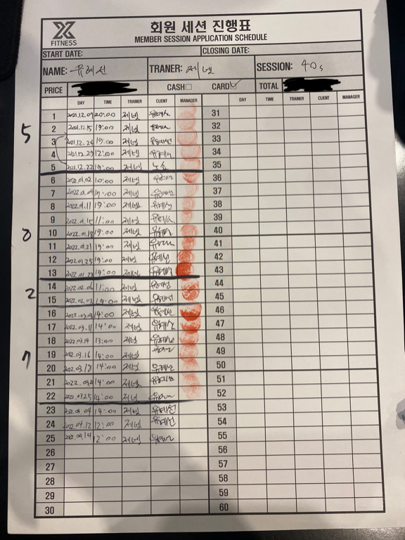 체험 수업 후에 너무 친절하게 알려주셔서 벌써 6개월간 총 50회 피티를 받았네요!!