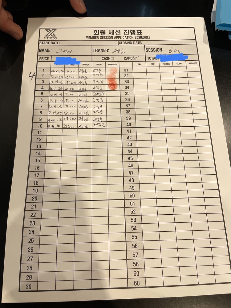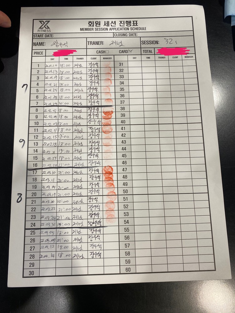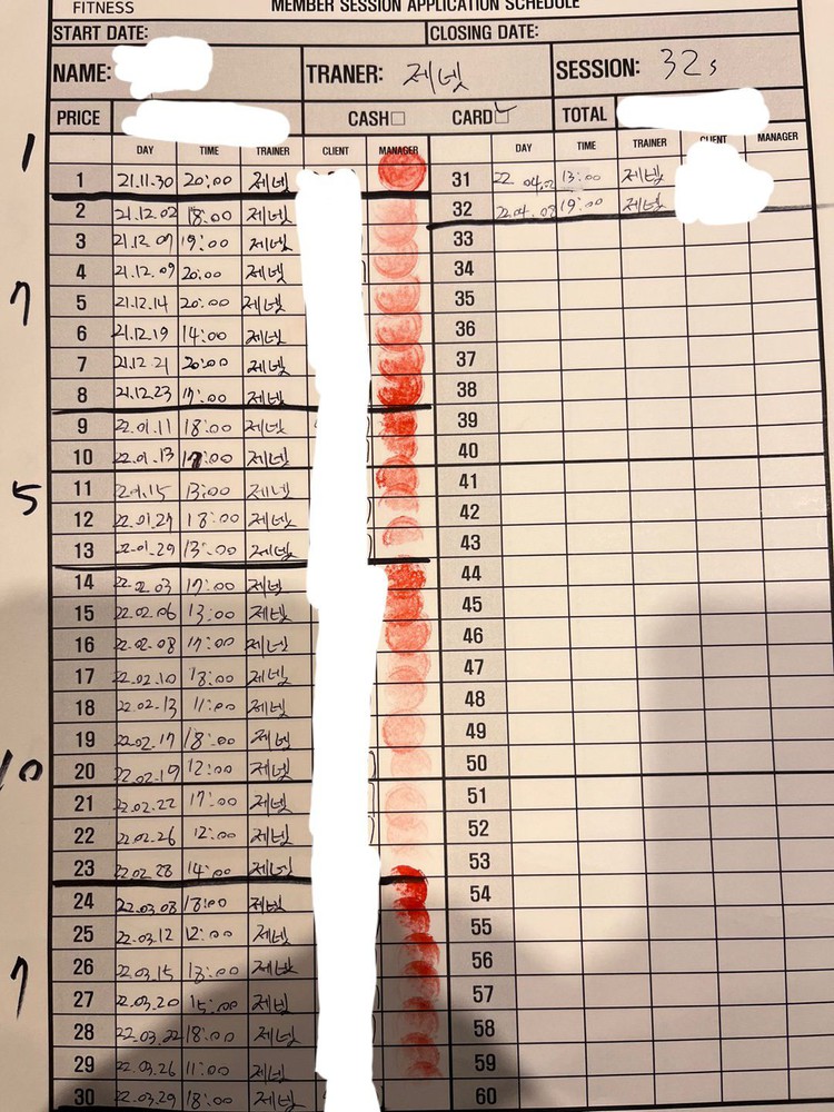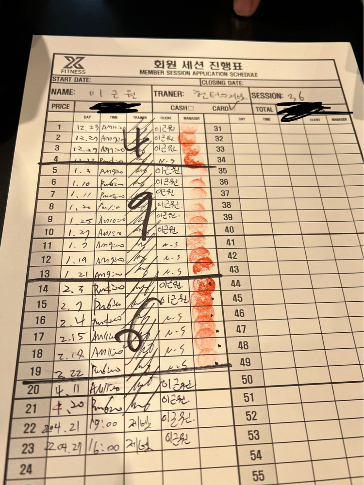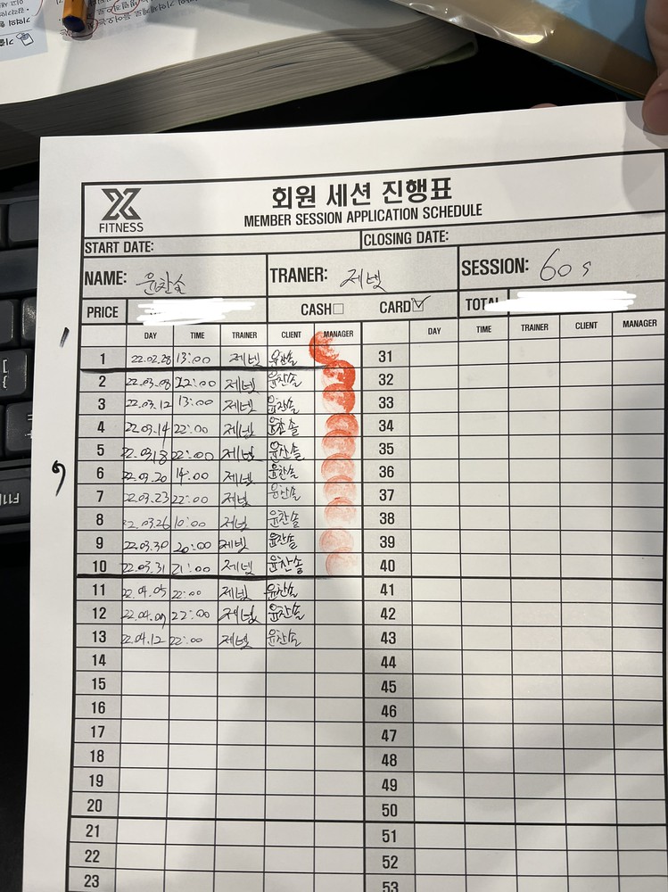 체험 수업 후에 너무 친절하게 알려주셔서 벌써 6개월간 총 50회 피티를 받았네요!!