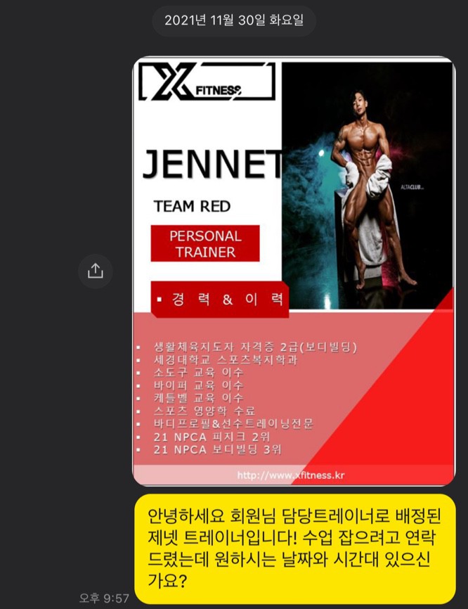 제가 헬스 경력은 4년차인데 항상 피티를 받아서 혼자 할 줄 모르는 헬린이였어요^_^ 제넷쌤과 첫 수업 하자마자 전에 피티를 받았던 쌤보다 더 열정적이고 세세히 알려주는 모습을 보고 재등록까지 했답니다 ㅎㅎ 쌤이 이제는 혼자 할 수 있게 만들어 주겠다해서 더 믿음이 갔어요! 저는 근성장이 느린 단점이 있는데 식단부터 섬세한 티칭까지 잘 챙겨주신 덕분에 몸이 갈라지기 시작했습니다, 근육이 눈이 보인 적은 첨이에요!