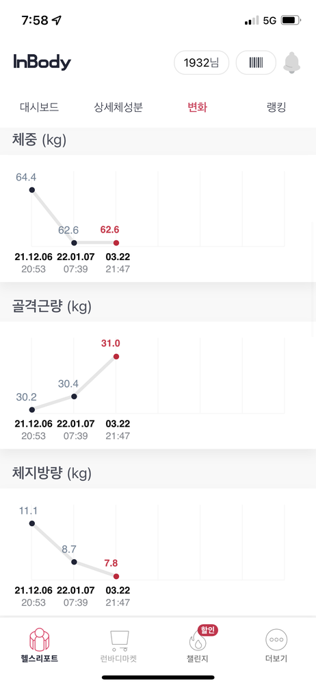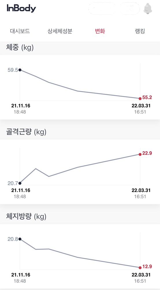 체지방은 높고 근육량은 적어서 걱정 많았는데 예상보다 변화가 좋아서 너무 놀랬어요!!