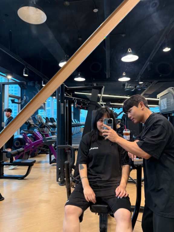 혼자 운동하다가 어깨 통증 때문에 잠시 쉬면서 다니던 헬스장을 옮기고 지훈 쌤한테 처음으로 PT를 받아봤어요.