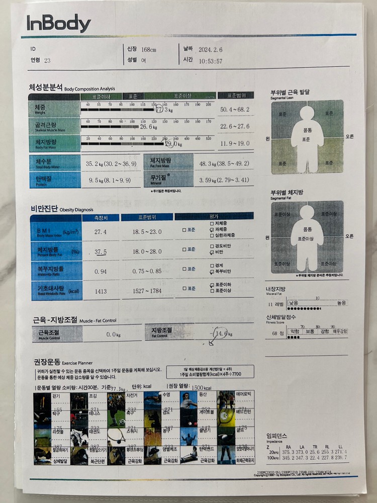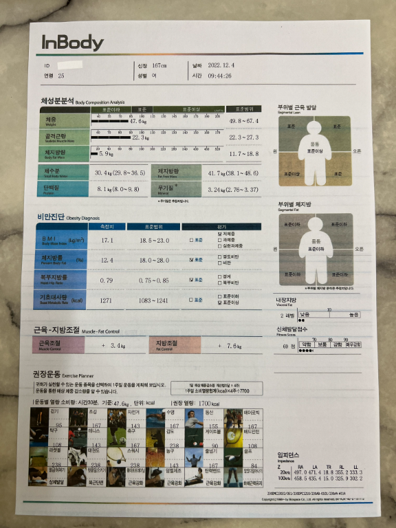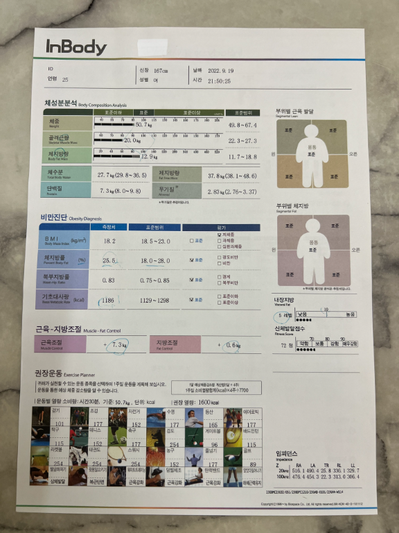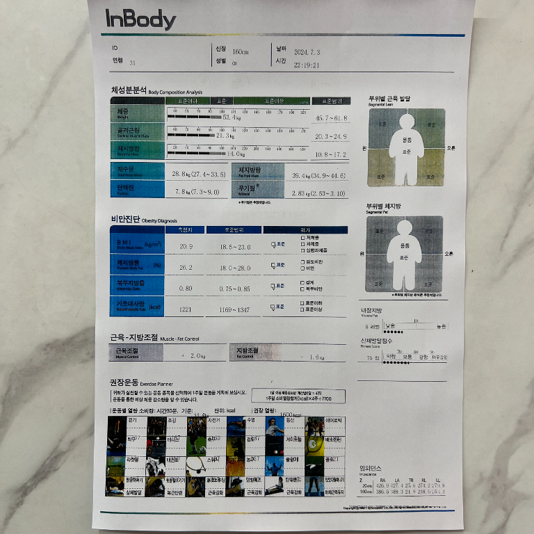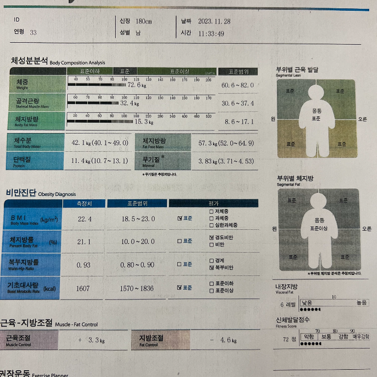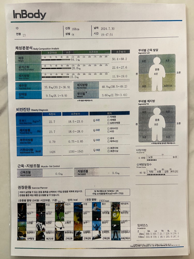 다이어트 목적이 아니라 식단을 전혀 하지 않고 야무지게 먹어대서 몸무게는 더 늘어버렸지만..^^ㅎㅎ 근육량이 무려 2키로가!! 늘었읍니다!!!