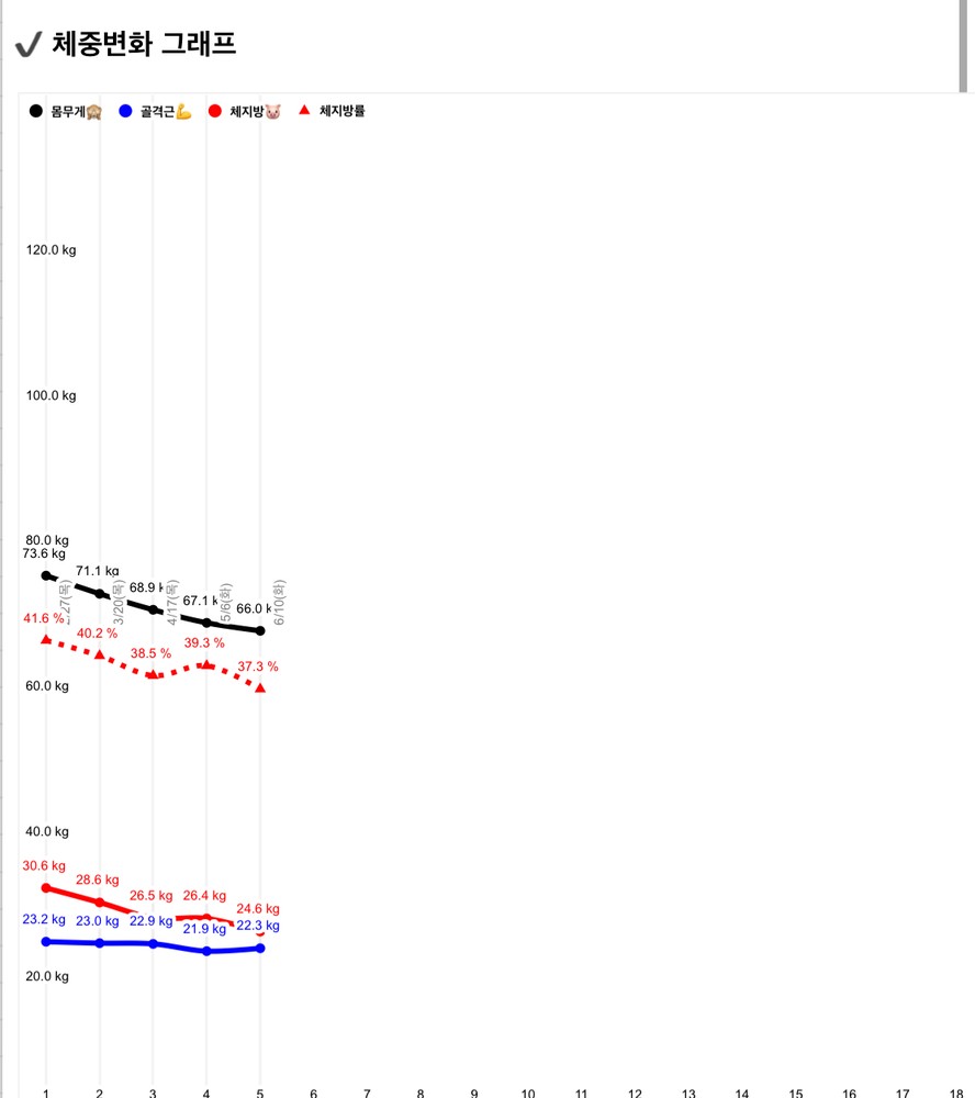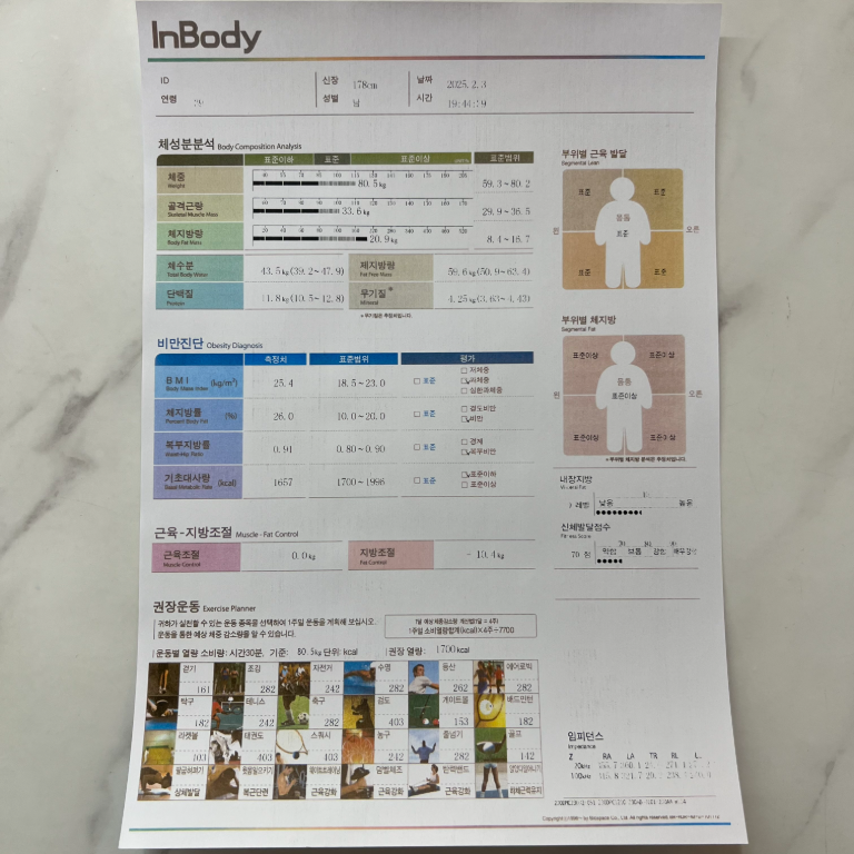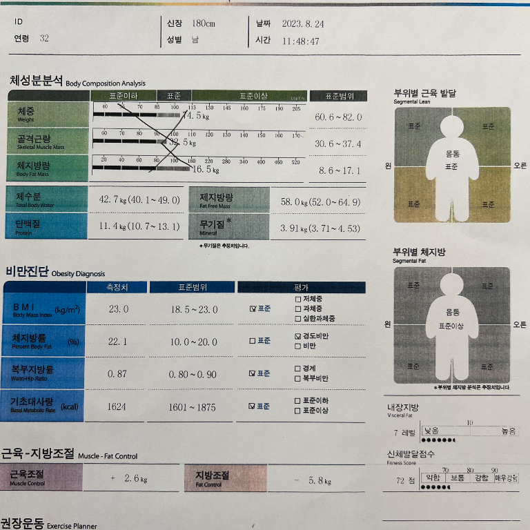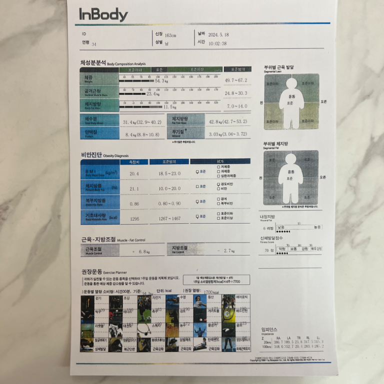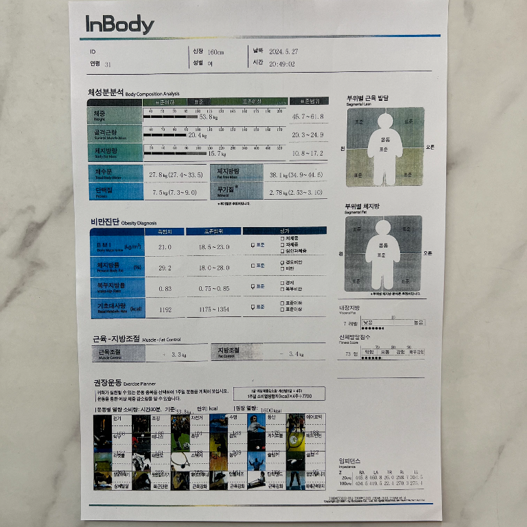 다이어트 목적이 아니라 식단을 전혀 하지 않고 야무지게 먹어대서 몸무게는 더 늘어버렸지만..^^ㅎㅎ 근육량이 무려 2키로가!! 늘었읍니다!!!