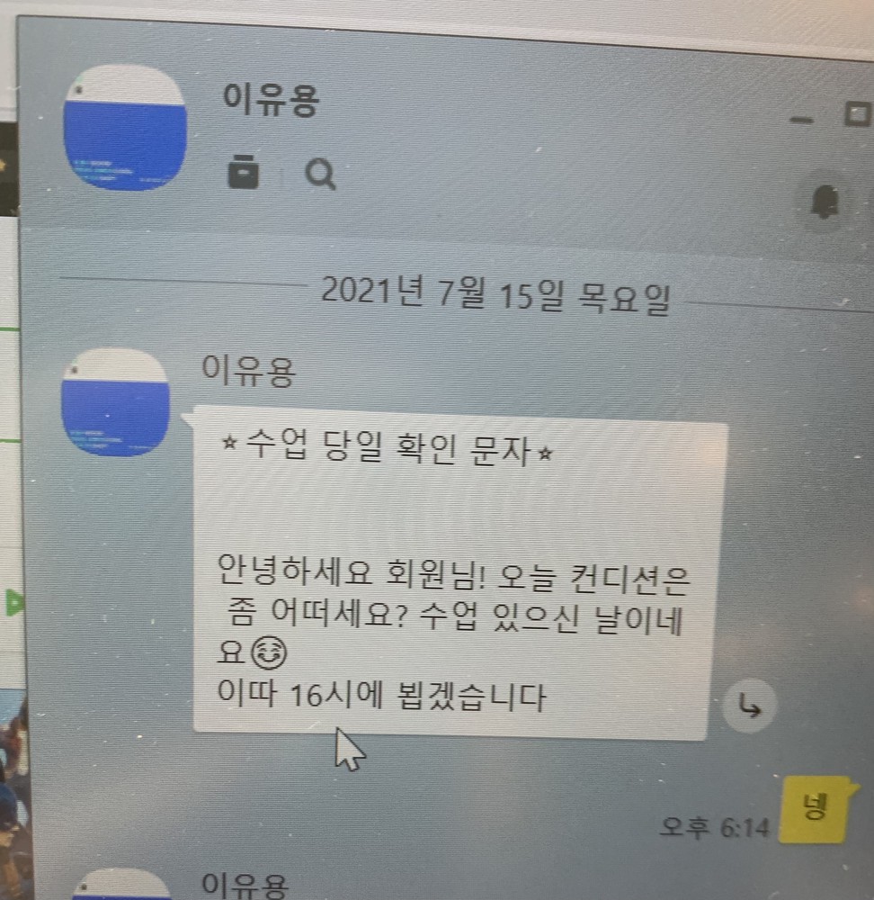전에는 운동하는 것이 정말 싫어서 억지로 운동하러 갔었는데 선생님이랑 할 때는 항상 친절하게 알려주시고 자세도 잘 알려주셔서 기분좋게 가서 운동할 수 있었어요! 몸무게 앞자리 바꾸기가 목표였는데 덕분에 바꾸기 성공했습니당 !