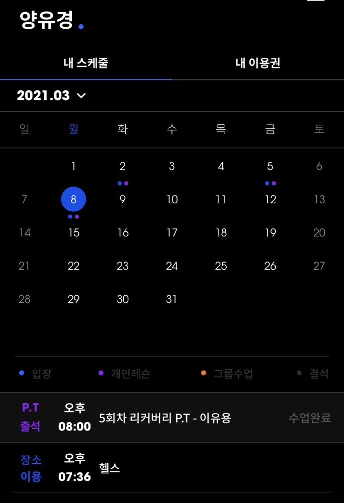 처음 PT라서 과연 효과가 있을까 의문이었는데 생활습관 교정까지 같이 진행하고 있어요! 헬스에도 재미 붙이면서 시간 될때마다 PT 가려고 노력중입니다