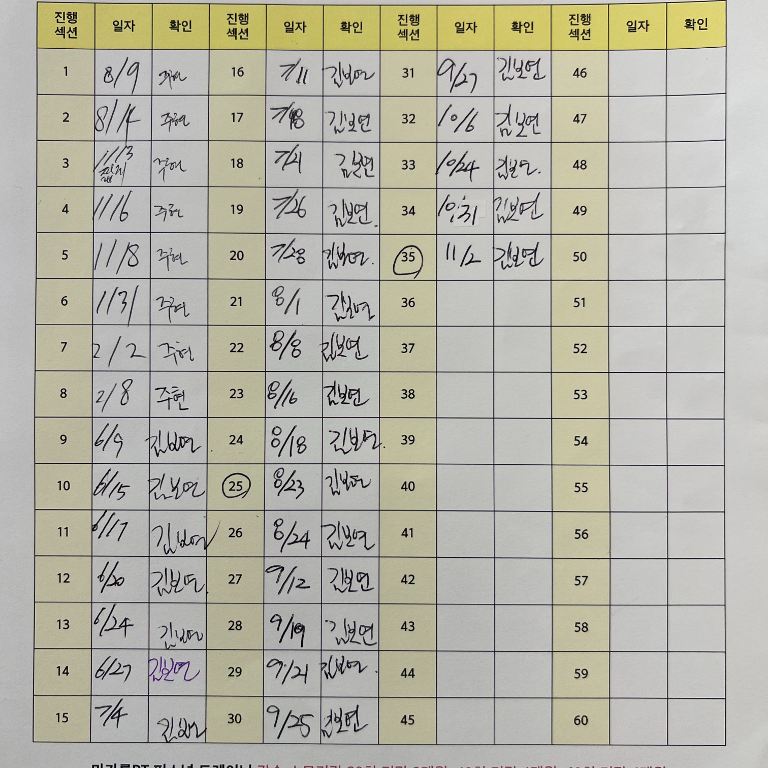 6개월 동안 50회 진행하며 잘 따라와 주셔서 고맙습니다 건강한 몸 상태 유지하지면서 꾸준히 운동하시길 바라겠습니다! 😀