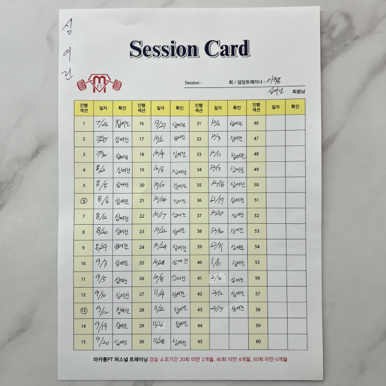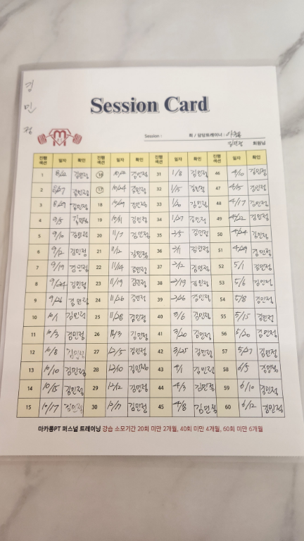 30회 동안 꾸준히 잘 따라와 주시고 개인 운동도 열심히 해주셔서 감사합니다 회원님 앞으로도 꾸준히 운동하는 습관 가지셔서 건강해지시길 바라겠습니다!!!