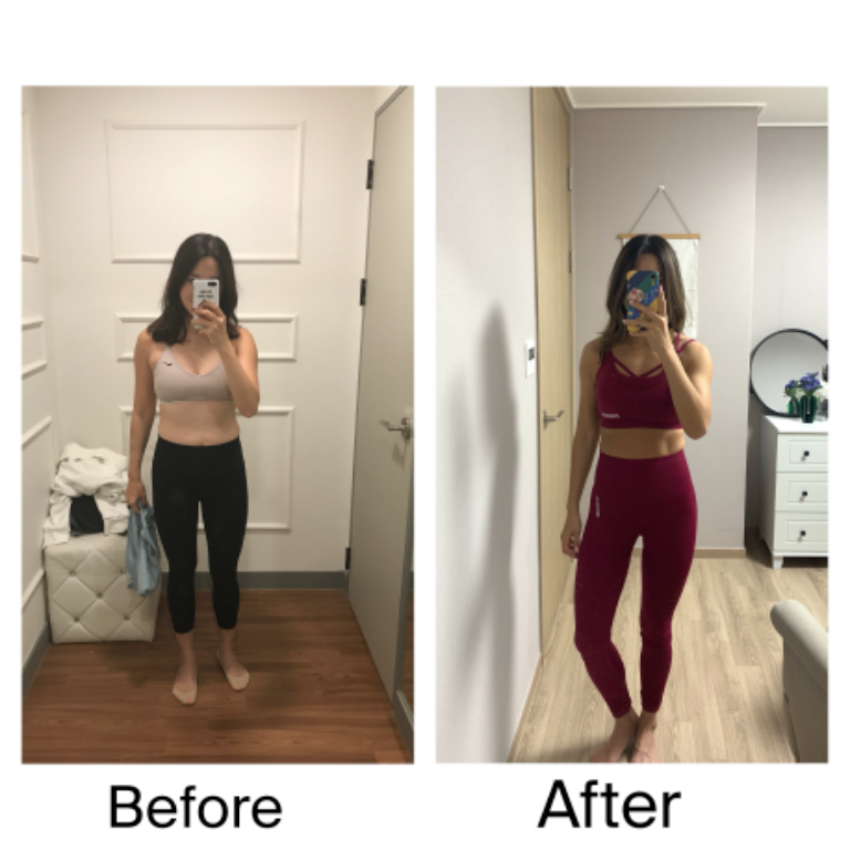 PT 시작할 당시 근육량, 체지방 모두 기준 이하였던 상태였는데 1년 동안 약 5kg 정도 건강하게 증량했고 눈에 보일 정도로 근육이 붙었습니다.