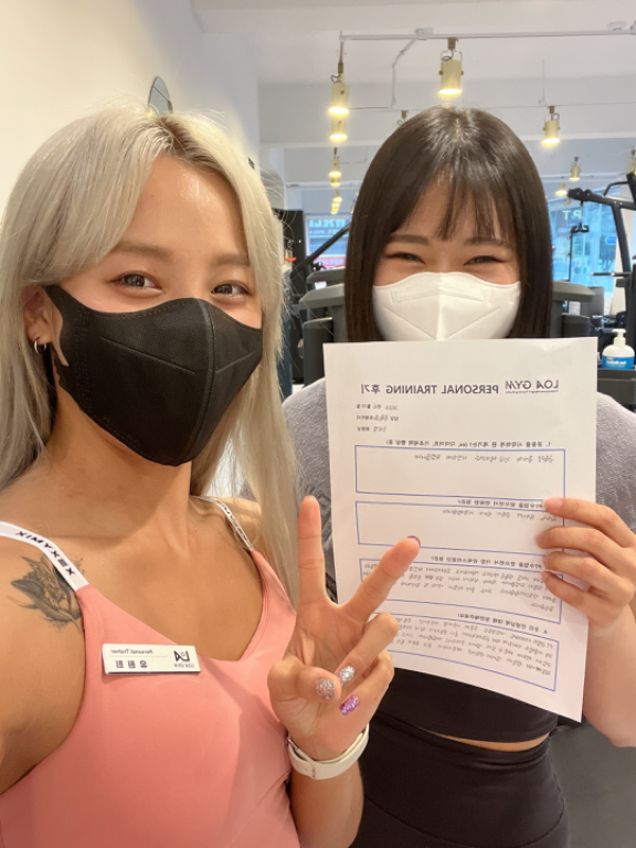 그 결과 헬린이였던 저는 체중감소는 물론이고 운동의 즐거움까지 느낄 수 있는 사람으로 변화되어 선생님과의 운동시간을 매번 기다리고 있어요~