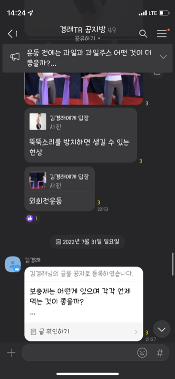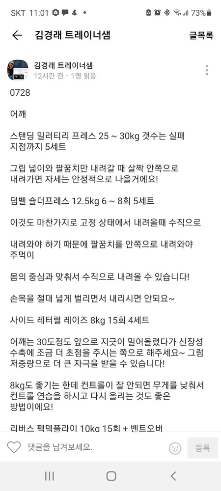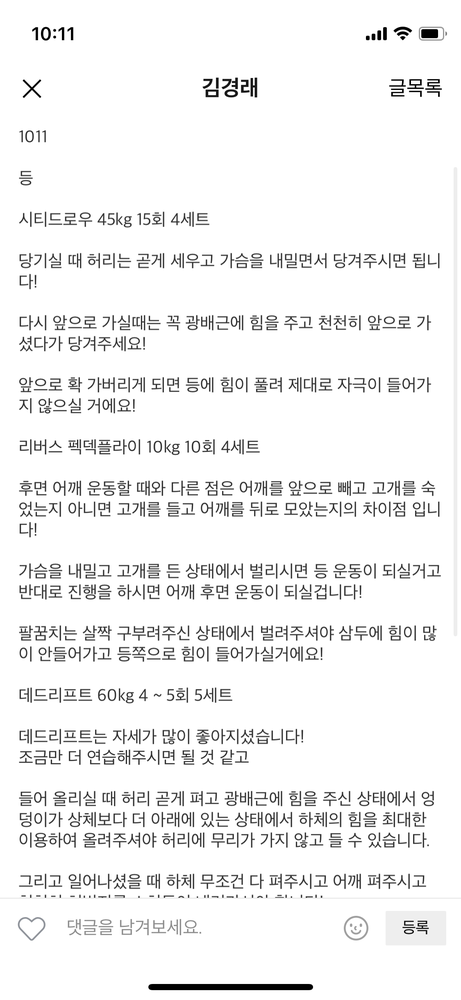 운동 후에 매일 피드백 주시는 것도 도움되구요 조금씩 근력을 찾아가는 중입니다😀😀
