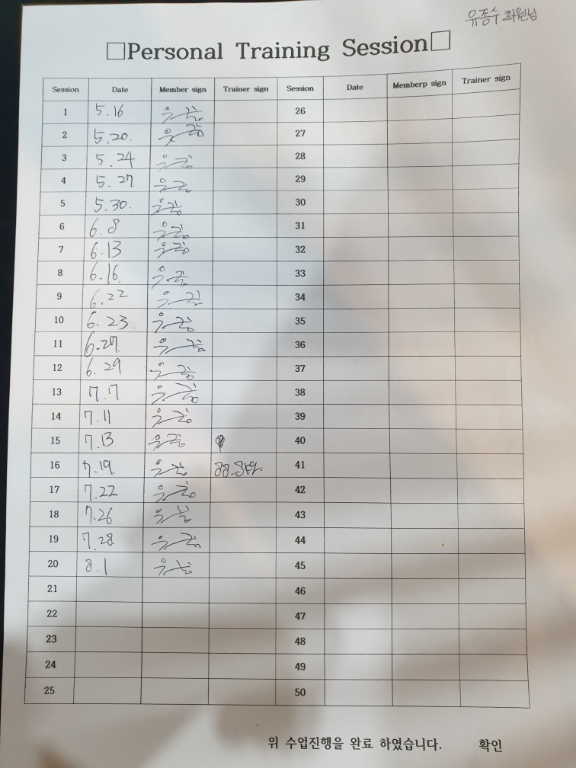 경래쌤과 7개월 간의 대장정!! 기대 반 걱정 반으로 시작한 운동이 어느덧 50회를 채우며 마무리했습니다!