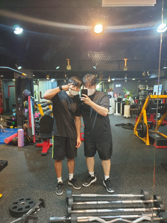2021년 7월 체중이 많이 늘어난 상태에서 운동을 한번도 해본적이 없는 상태에서 김경래 선생님에게 운동을 배우기 시작하였습니다.