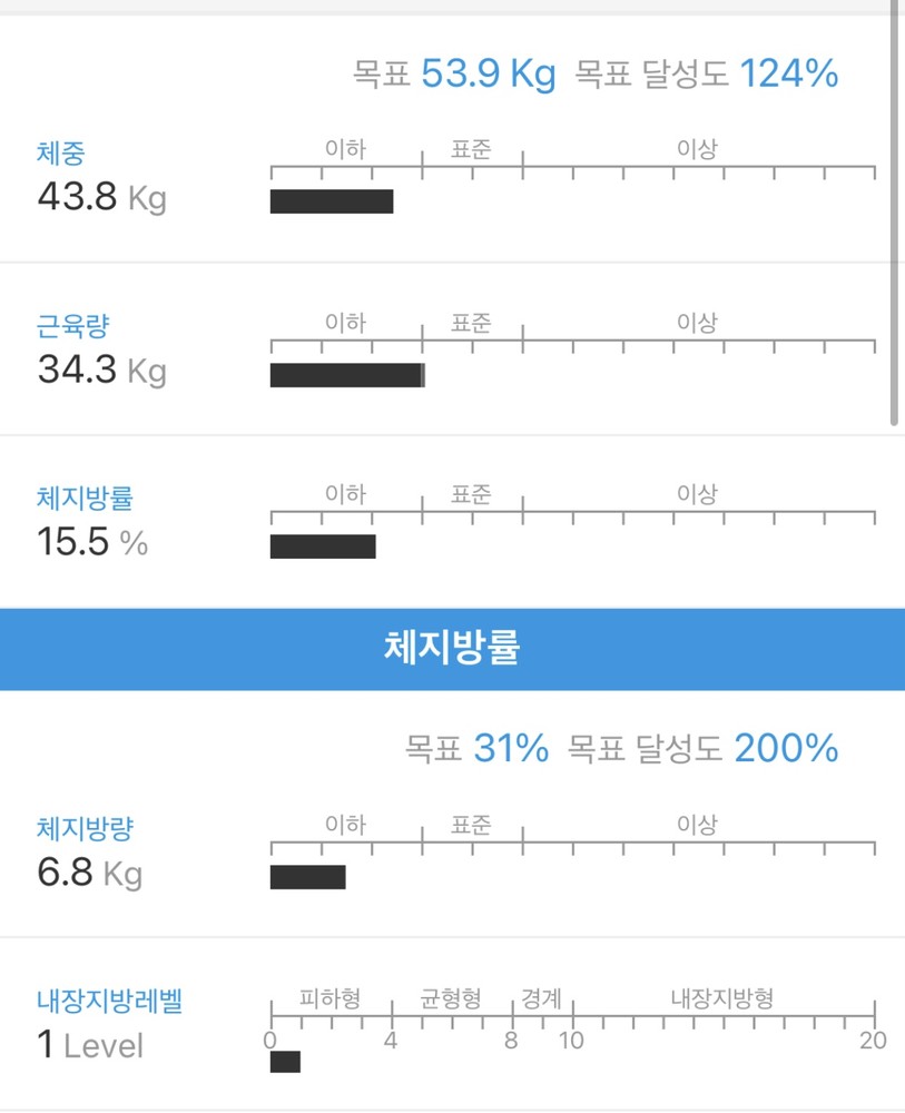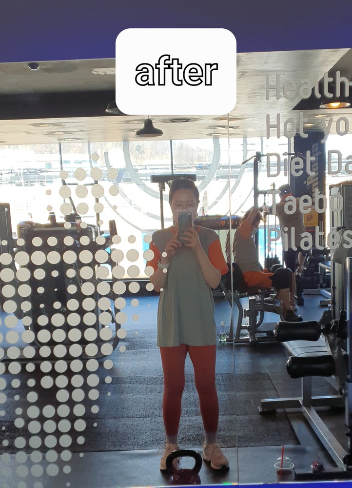 첫피티부터 종이인형 별명을 얻은 팔다리 얇은데 배만 나온 마른비만, 근육량도 60대 여자 수준😭 처음에는 맨몸으로만 해도 온몸이 바들바들 떨리던 저질체력이었는데 피티받고 근육량 4kg, 체지방 2kg정도 빼서 몸무게로만 보면 2kg정도 늘었지만 몸은 훨씬 더 예뻐졌어요