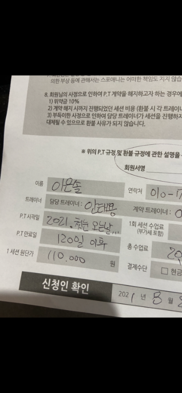 운좋게 태용쌤을 만나 몸상태 진단을 받게 되었는데 설명을 잘해주셔서 바로 PT 50회를 등록해버렸고 내심 영업당한걸까 걱정도 했습니다...🤣