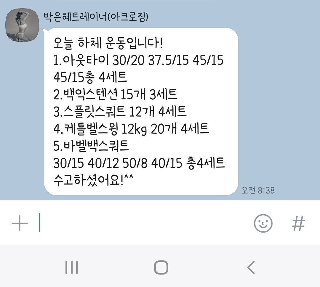 스쿼트 자세가 안좋아서 바벨스쿼트후 허리가 아팟는데 박은혜선생님이랑 수업한번만에 허리도 안아프고 80kg이나 들게되었어요☺️ 은혜쌤만나고 조금씩 자세 수정하며 운동이 재밌어졌어요