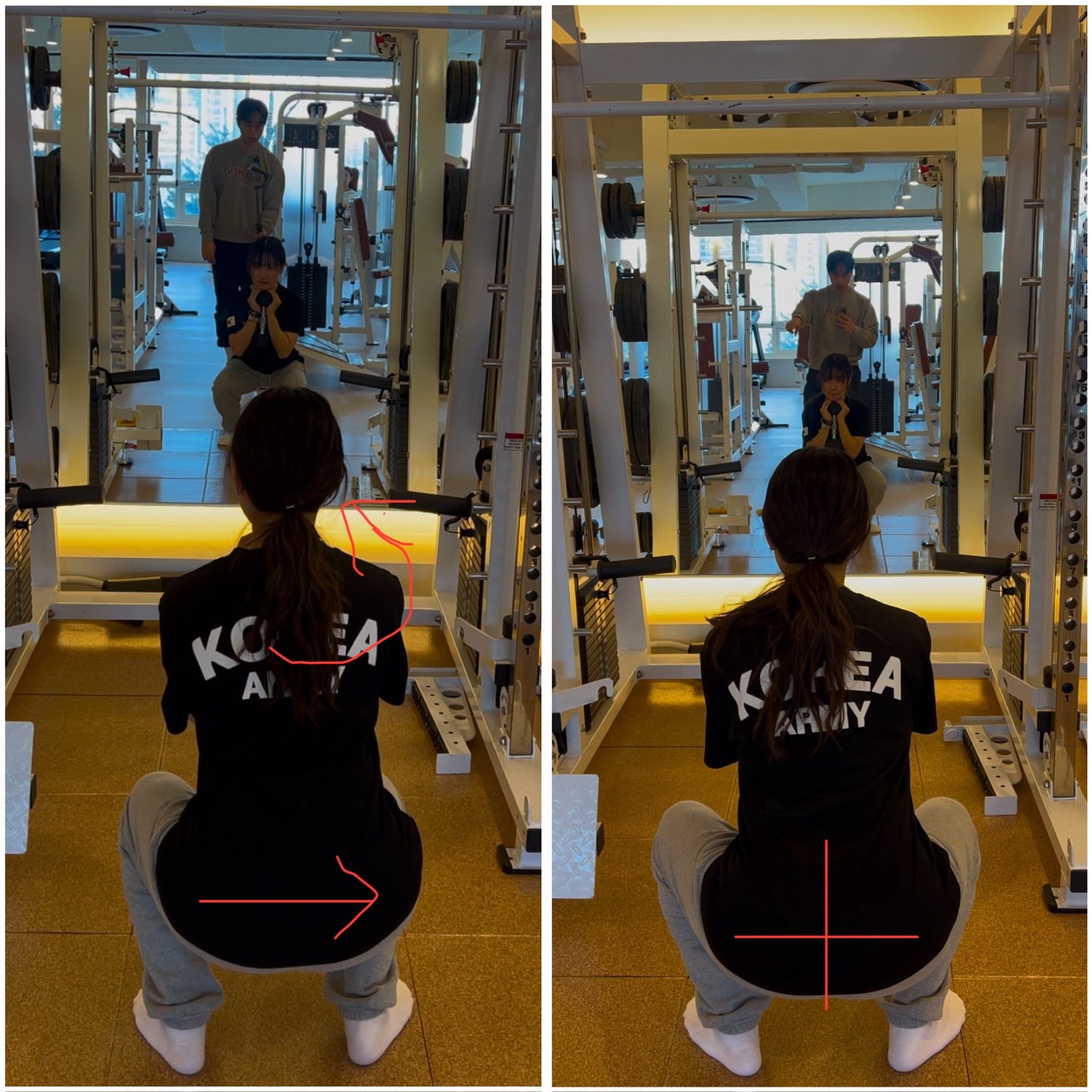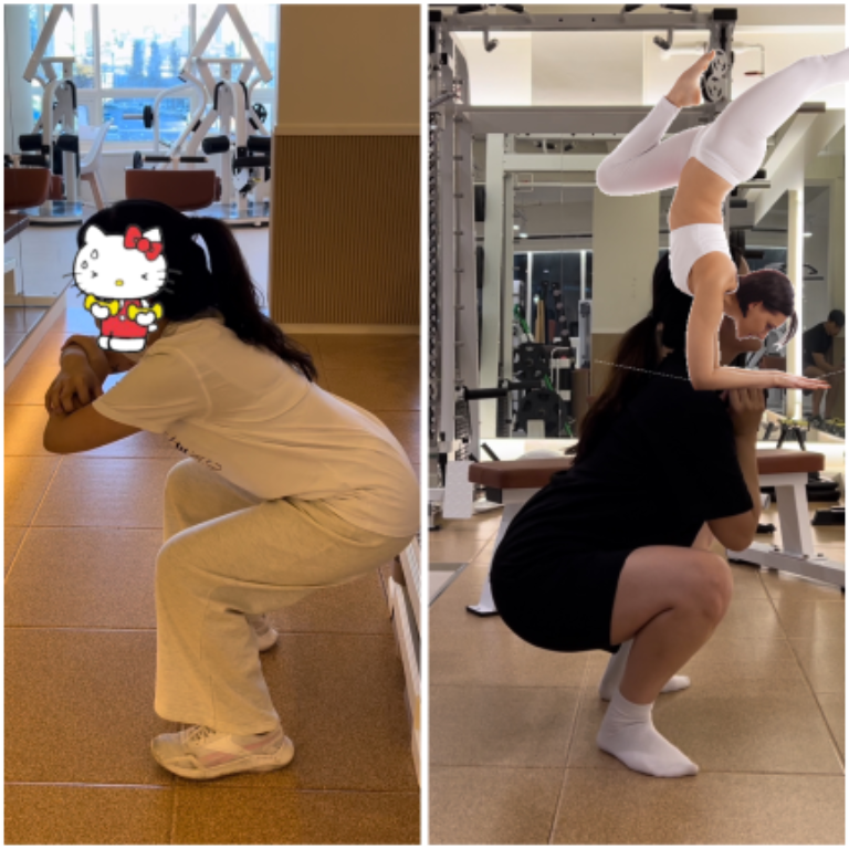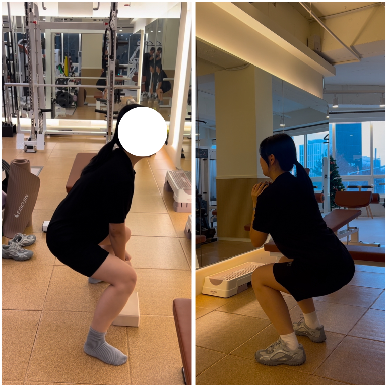 스쿼트 자세도 처음엔 정말 엉성했는데 지금은 훨씬 좋아졌어요🥹