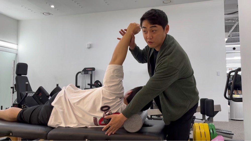 동작을 확인해보시더니 바로 적합한 스트레칭
