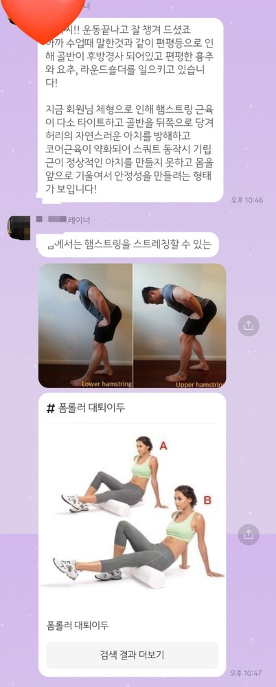 체계적인 관리와 자세교정으로 이 운동을 하면서 어디에 자극을 줘야하고, 어디에 도움이 되는지 상세하게 알려주셔서 초보자인 저도 이해하기 쉬웠어요~선생님 감사합니다😃