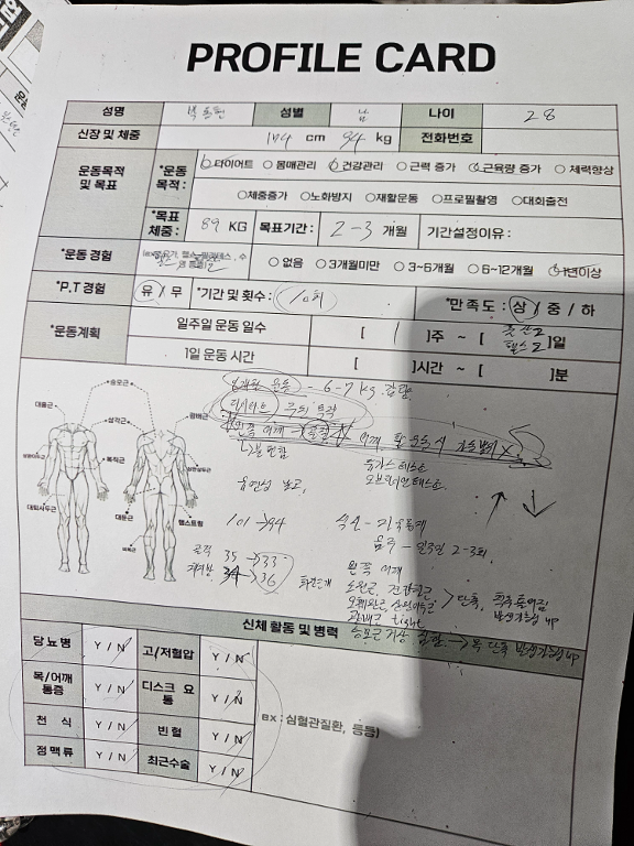 헬스가 처음이었는데 잘 따라와주셔서 감사했습니다 ^^