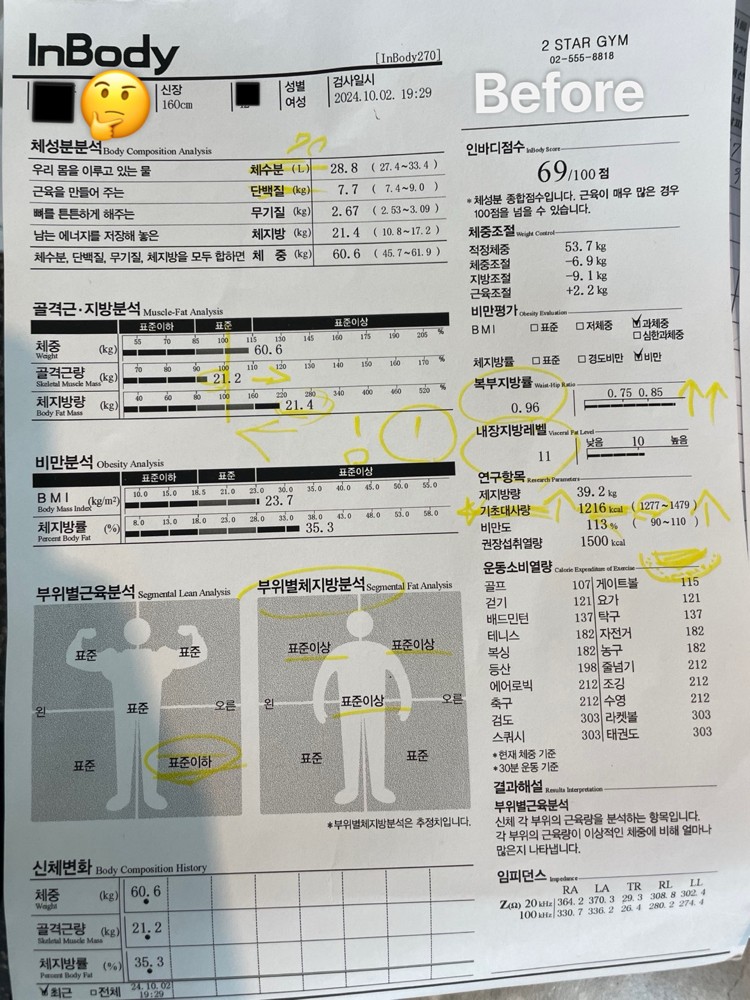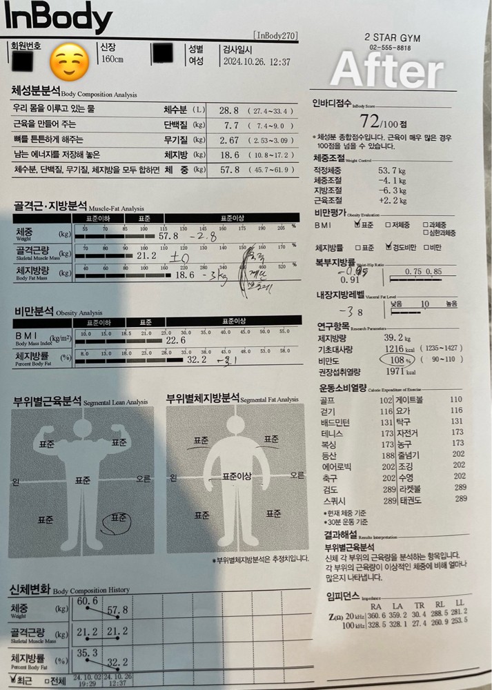 트레이너분이 인바디 보며 식습관이나 생활패턴 교정에대해 많이 알려주시고 식단도 추천해주셔서 너무 유용했어요.