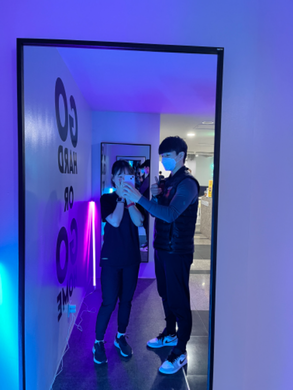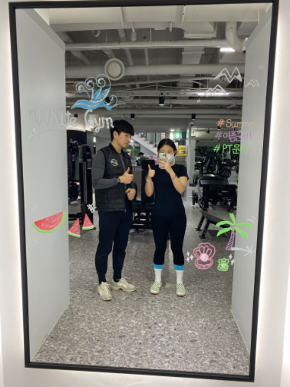 점점 좋아지는 내 자신을 거울로 보고 정말 피티 잘받았다 생각했습니다.