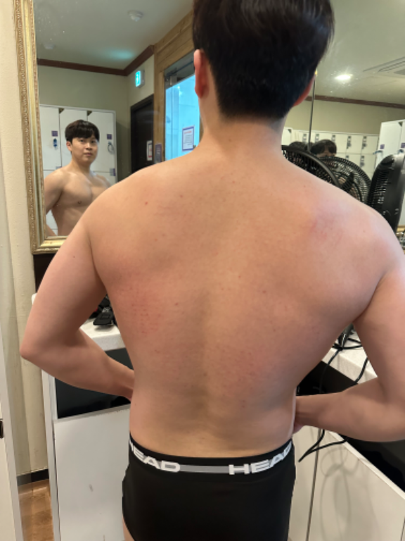 쌤한테 피티를 받으면서 제 평평한 등이 이렇게 성나게…! 어깨도 넓어져서 너무 좋아요!