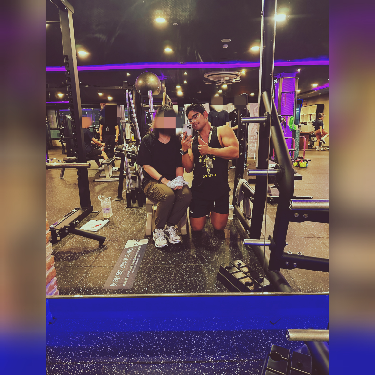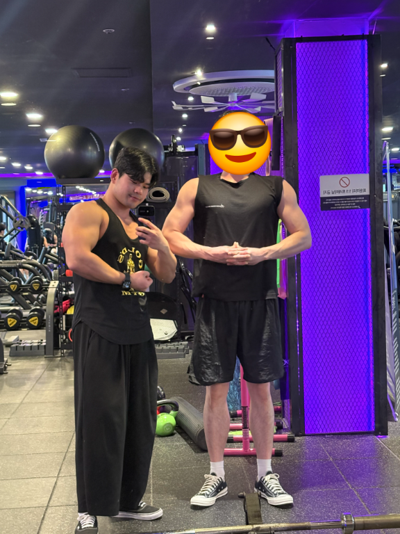 몇년동안 수많은 트레이너 선생님들께 피티를 받아봤고 바프도 찍었던 사람입니다! 혼자 운동할수있음에도 불구하고 의지박약과 ㅎㅎ어려움이 생겨 다시 제대로 배워보고싶은 목표가 생겨 피티를 시작했습니다!