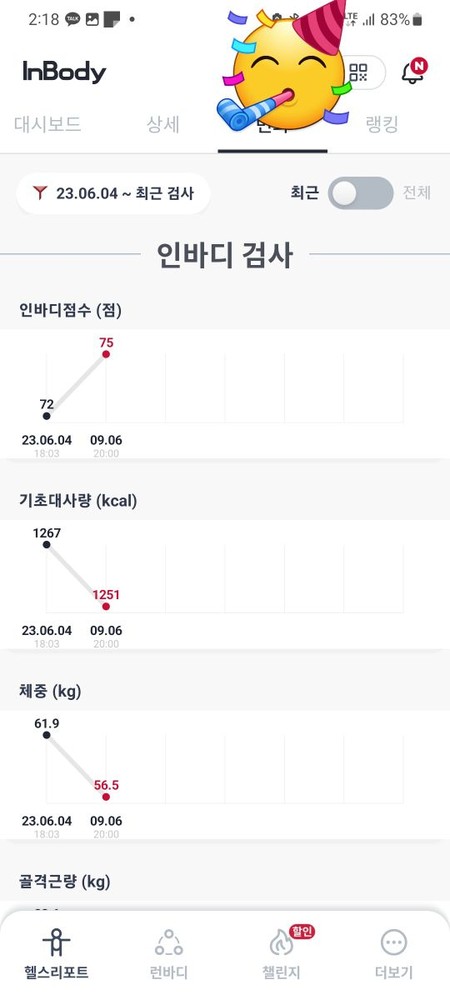 지금까지 다른 곳에서 피티를 30회 이상 받아 왔지만 헬스장에가면 런닝머신만 하고 무슨운동을 해야할지 모르겠더라구요😭 그래서 처음 헬스 다니면서 PT를 받을지 말지 고민이 많았어요 트레이너님께 OT 받고 PT를 받아야겠다고 생각을 했어요 저의 목표는 스스로 운동하는 습관과 다이어트가 목적이였는데 제 목적을 이룰수 있겠다 생각이 들었습니다!! 동기유발 할 수 있는 방법과 운동루틴 짜는 방법, 생활습관개선과 관련해서 친절하게 설명해 주셨어요 수업당일 저의 몸 컨디션에 따라 운동방향을 결정해 주시고 수업외 시간에 식단체크도 병행해주셔서 피드백을 통해 개선방안 식단 구성 방법 등을 알려주셨어요 또 저는 무릎이 많이 안좋아서 하체운동에 두려움이 있었는데 운동 전후 근육이완 마사지나 스트레칭 방법💪 하체운동에서🦶힘주는 방법과 같이 세부적으로 알려주셔서 지금까지 잘못 된 습관을 고치고 고통없이 즐겁게 운동할 수 있어서 선생님께 정말 감사합니다😍