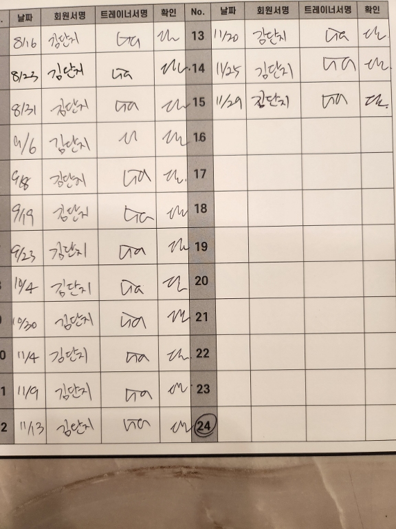 횐님 초반에 비해 체형이라든지 몸의 움직이라든지 전부 눈에 띄게 좋아졌어요!!! 20회추가등록 후 또 추가 등록 감사드리구 앞으로도 잘 지도해드릴게요!! 화이팅💛